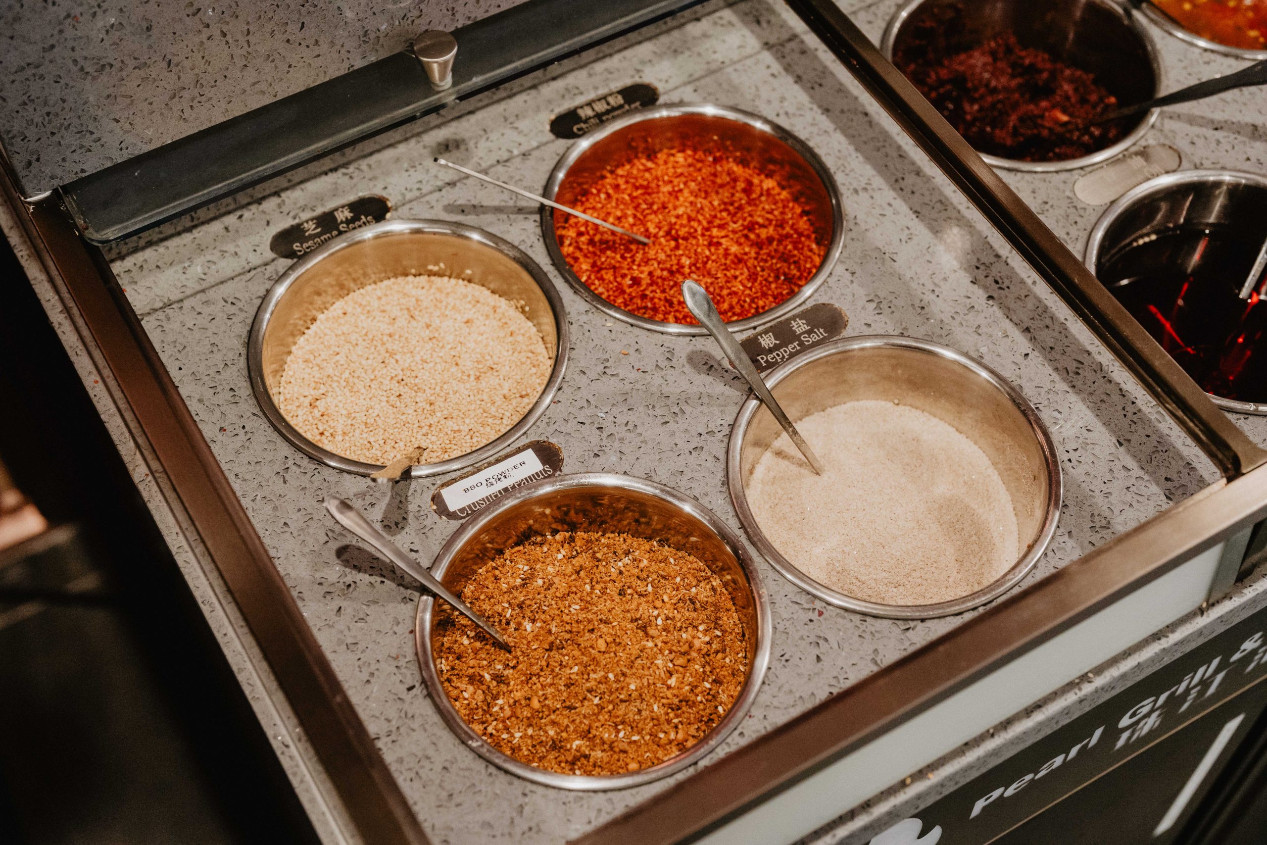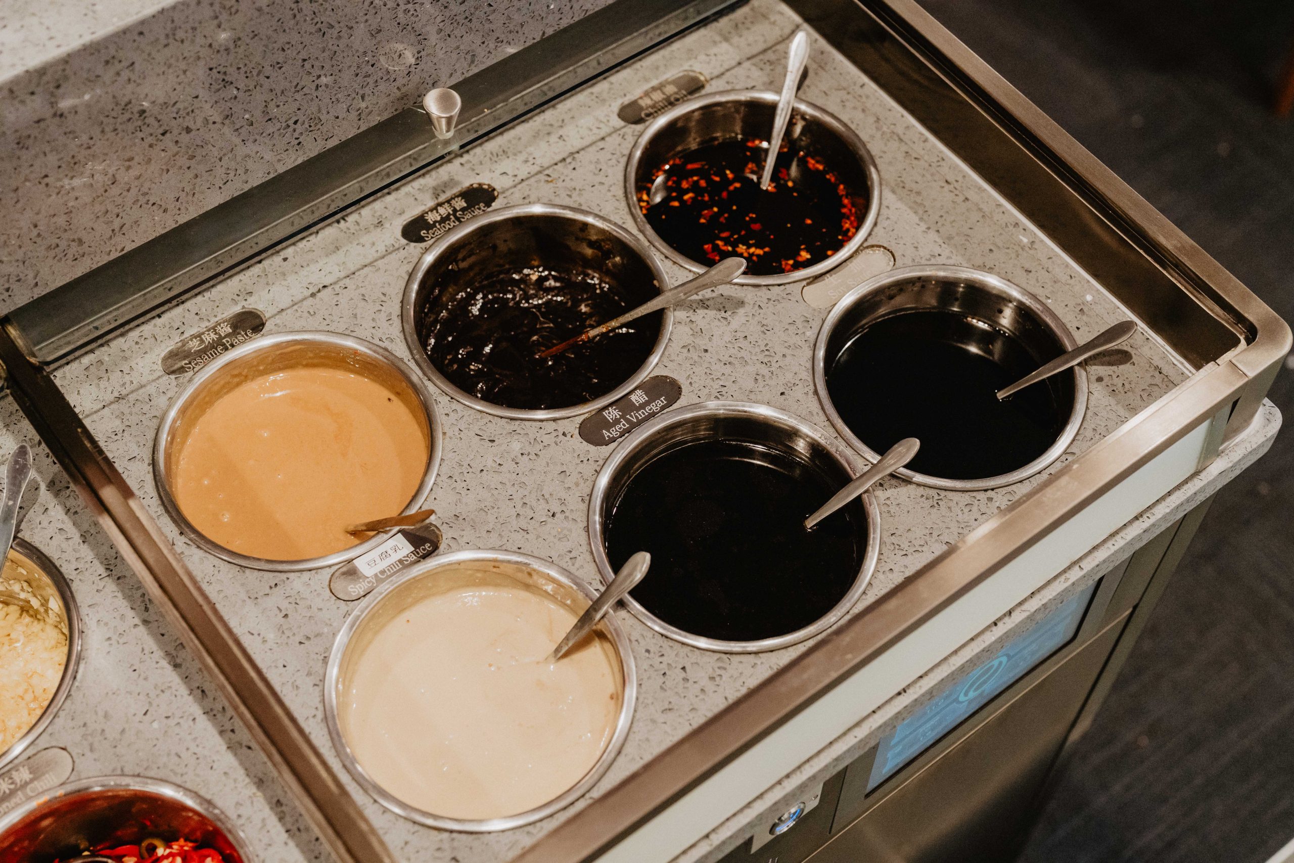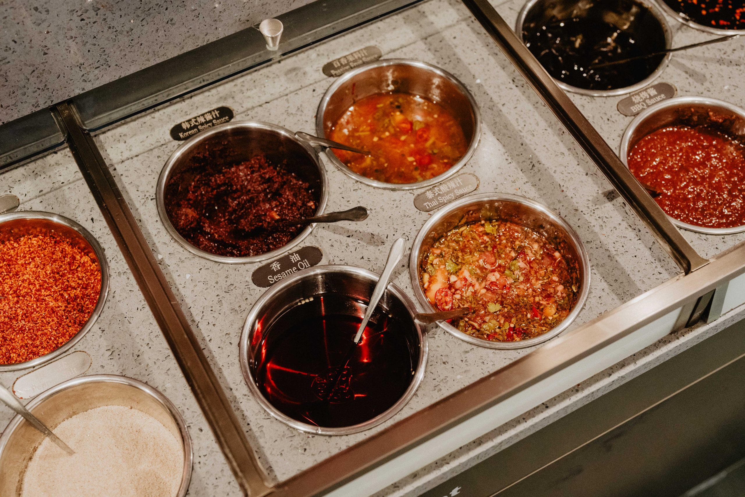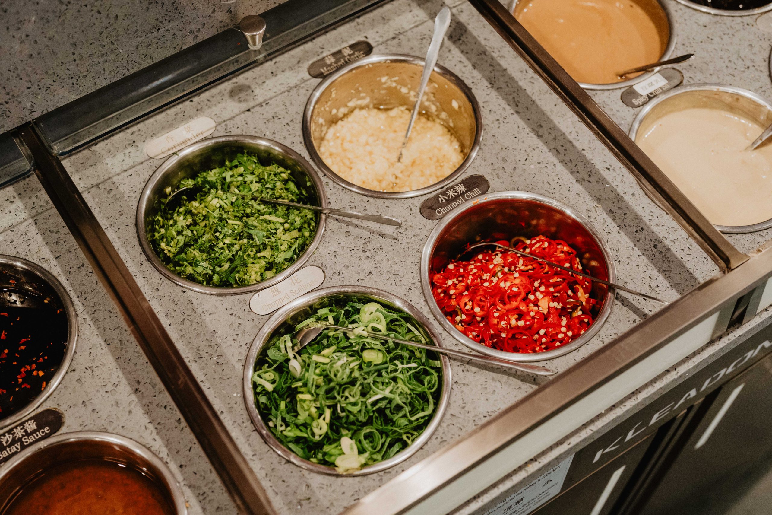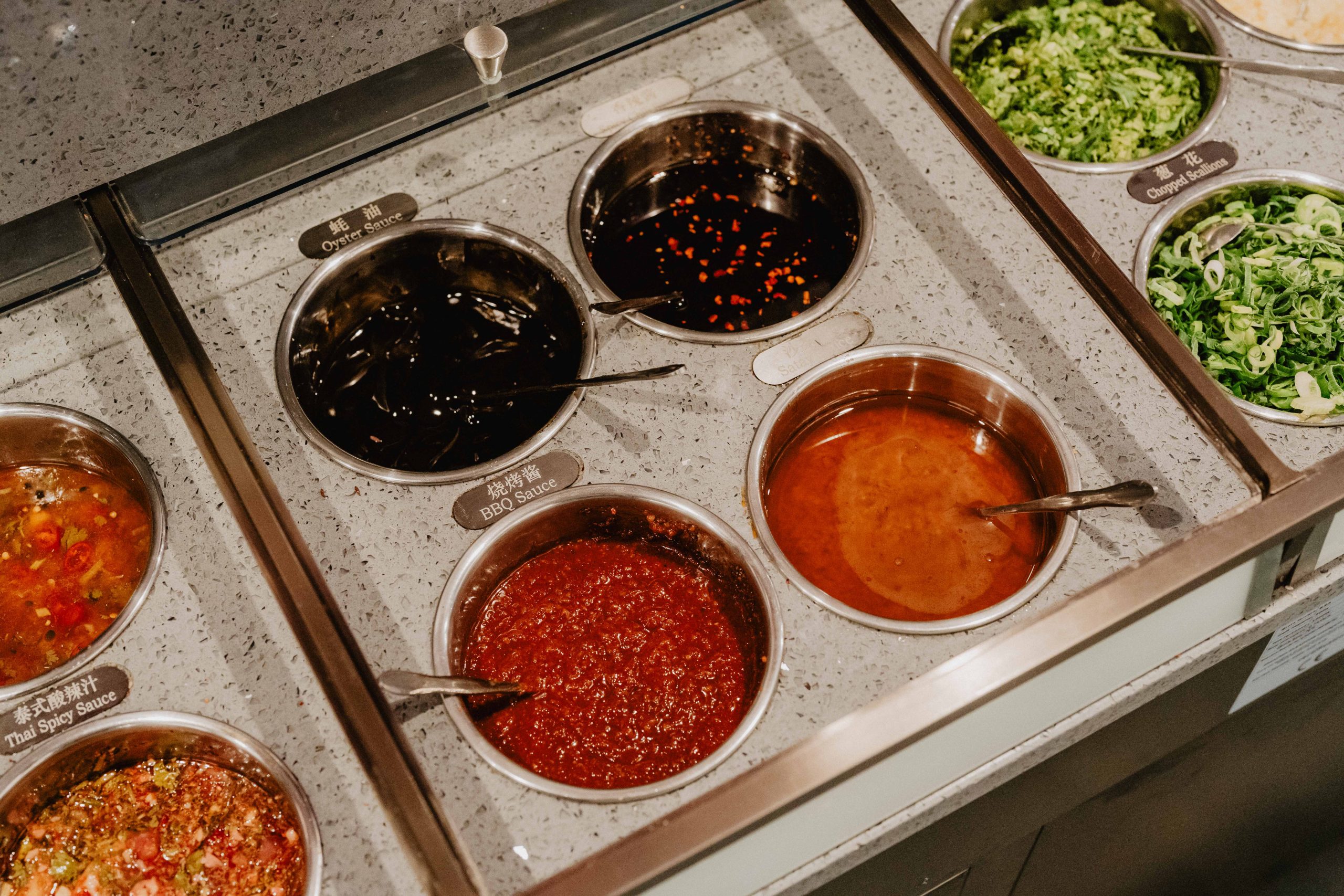 我们的酱料吧以个人口味为主。从各种丰富、新鲜的配料中随意搭配,创造出您的完美蘸酱。无论您喜欢大胆辛辣还是清淡芳香,这里都能满足您的各种口味。